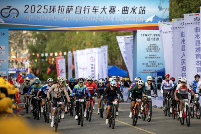 当日,2025环拉萨自行车大赛曲水站比赛在拉萨市曲水县举行。赛事共设置公路自行车男子精英组、公路自行车女子精英组、山地自行车男子公开组、山地自行车女子公开组四个组别。近300名选手在雅鲁藏布江沿岸公路上完成了约58公里的比赛。