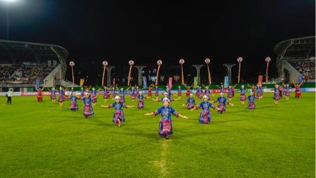 中场休息成为文化交融与全民欢庆的舞台。龙狮翻腾演绎《锦绣中华》,尽显雄浑气魄;畲族风情舞蹈《鼓舞畲乡》带来浓郁民族韵律;《努尔飞腿》的足球技能表演令人拍手叫绝……多元文化在绿茵场边碰撞交融,为激烈的赛事注入独特韵味。